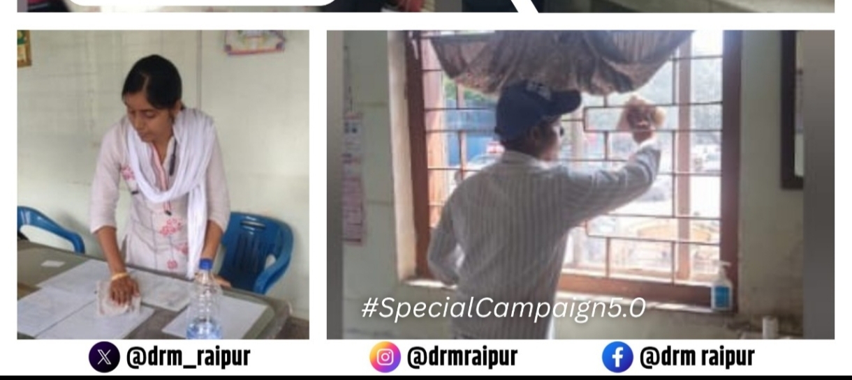 रायपुर 08अक्टूबर 2025।भारतीय रेलवे में स्वच्छ रेल स्वच्छ भारत के तहत स्वच्छता पखवाडा का आयोजन किया जा रहा है। दिनांक 01 अक्टूबर से 15 अक्टूबर 2025 तक आयोजित इस स्वच्छता पखवाडा में दक्षिण पूर्व मध्य रेलवे मुख्यालय एवं रायपुर मंडल में प्रत्येक दिवसों के थीम के अनुसार विभिन्न कार्यक्रमों का आयोजन किया जा रहा है।इसी क्रम में आज दिनांक 08 अक्टूबर को “स्वच्छ परिसर थीम पर मंडल के सभी स्टेशनों एवं रेलवे कॉलोनी में गहन सफाई अभियान चलाया गया। मंडल के नामित अधिकारियों और कर्मचारियों की टीमों द्वारा मंडल के प्रमुख स्टेशनों के प्लेटफार्मों परिसरों में स्वच्छता का गहन निरीक्षण किया गया। मंडल के कार्य स्थल, कोचिंग डिपो दुर्ग, आर आर ओ एच डिपो दुर्ग, इलेक्ट्रिक लोको शेड भिलाई, रायपुर स्टेशन क्रू लॉबी, रेलवे कॉलोनी रनिंग रूम रेलवे अस्पतालों में स्वच्छता के लिए गहन अभियान चलाया गया।सभी प्रमुख स्टेशनों के साथ ही साथ छोटे-छोटे स्टेशनों में भी स्वच्छता अभियान के तहत विशेष साफ-सफाई की गई। यात्रियों को बताया गया की पानी की खाली बोतल पटरी पर न फेके, इन बोटलों को बोटल क्रशर मशीन में डालें। स्टेशन परिसर स्वच्छ व सुंदर बनाए रखने के प्रति जागरूक भी किया गया।