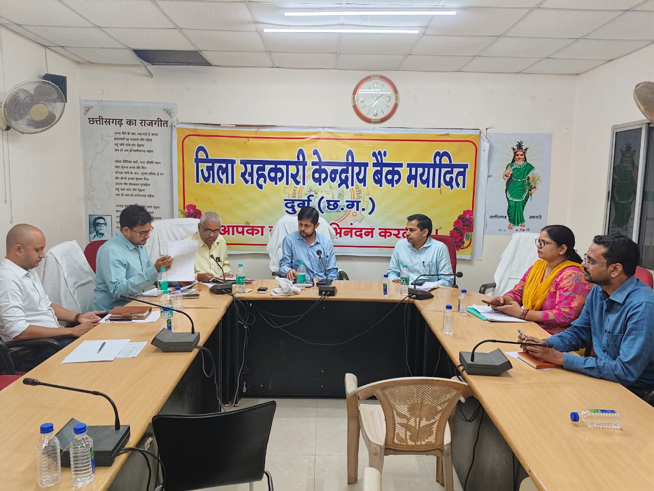 दुर्ग, 08 अक्टूबर 2025/ कलेक्टर श्री अभिजीत सिंह की अध्यक्षता में जिला सहकारी केंद्रीय बैंक मर्यादित दुर्ग प्रधान कार्यालय के सभागार में धान खरीदी तैयारी के संबंध में विभागीय अधिकारियों की समीक्षा बैठक ली गई। बैठक में अपर कलेक्टर श्री अभिषेक अग्रवाल, खाद्य नियंत्रक श्री अनुराग भदौरिया, उप संचालक कृषि श्री संदीप कुमार भोई, श्री हृदेश शर्मा मुख्य कार्यपालन अधिकारी, श्री भौमिक बघेल जिला विपणन अधिकारी, भूअभिलेख शाखा के अधिकारी तथा मंडी सचिव उपस्थित रहे। बैठक में फसल सर्वे, एग्रीस्टेक पोर्टल में फार्मर रजिस्ट्रेशन, एकीकृत पोर्टल में डाटा कैरी फारवर्ड, धान खरीदी की अग्रिम तैयारी, विगत वर्ष के धान का उठाव, कस्टम मिलिंग आदि विषयों पर समीक्षा की गयी। अधिकारियों को धान के फसल भौतिक सत्यापन करने निर्देशित किया गया। जिन किसानों ने एग्रीस्टेक पोर्टल पर अपना पंजीयन नहीं कराया है, उनका शीघ्र पंजीयन करवाने तथा समिति में जाकर धान बेचने के लिए उनके नॉमिनी की जानकारी देना सुनिश्चित करने कहा गया है। बैठक में जिले की बैंक शाखाओं के शाखा प्रबंधकों के साथ मुख्यालय के स्टॉफ उपस्थित रहें।
