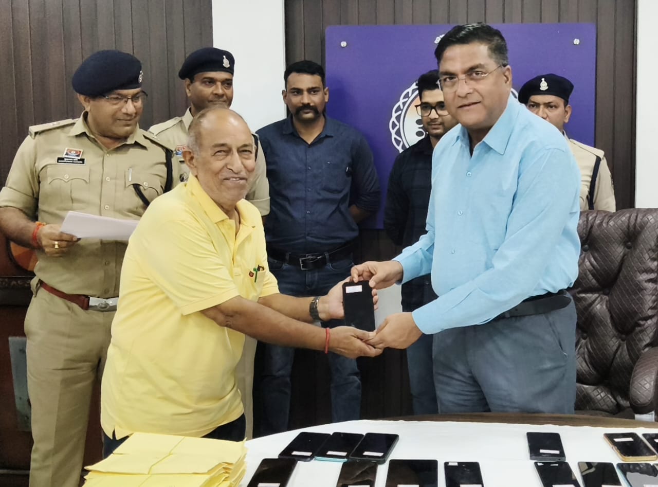 भिलाई 12 अक्टूबर 2025। जिले में गुम मोबाईल के संबंध में लगातार मोबाईल गुमने की रिपोर्ट प्रार्थियो द्वारा थानो में दर्ज कराई जा रही है। जिससे वरिष्ठ पुलिस अधीक्षक दुर्ग विजय अग्रवाल ने गुम मोबाईलो की पतासाजी कर प्रार्थियो के सुपुर्द करने हेतु निर्देश प्राप्त हुए थे। जिसके परिपालन में एन्टी क्राईम एण्ड सायबर यूनिट एवं जिला दुर्ग के थाना प्प्रभारियों के नेतृत्व में एन्टी क्राईम एण्ड सायबर यूनिट एवं थाने की टीम को गुम हुये मोबाईलों को खोजकर संबंधित मोबाईल स्वामियों को वितरण करने हेतु लगाया गया। वरिष्ठ अधिकारियों के निर्देशानुसार वर्ष 2024-2025 के गुमे हुये मोबाईलों से संबंधित आवेदन पत्रों के आधार पर अभियान चला कर मेहनत एवं लगन से एन्टी क्राईम एण्ड सायबर यूनिट टीम द्वारा दुर्ग, भिलाई, राजनांदगाँव, बालोद, बेमेतरा एवं रायपुर क्षेत्रों में चल रहे कुल 201 नग विभिन्न कंपनियों के मोबाईलों जुमला कीमती तकरीबन 41 लाख रूपये का बरामद किया गया।