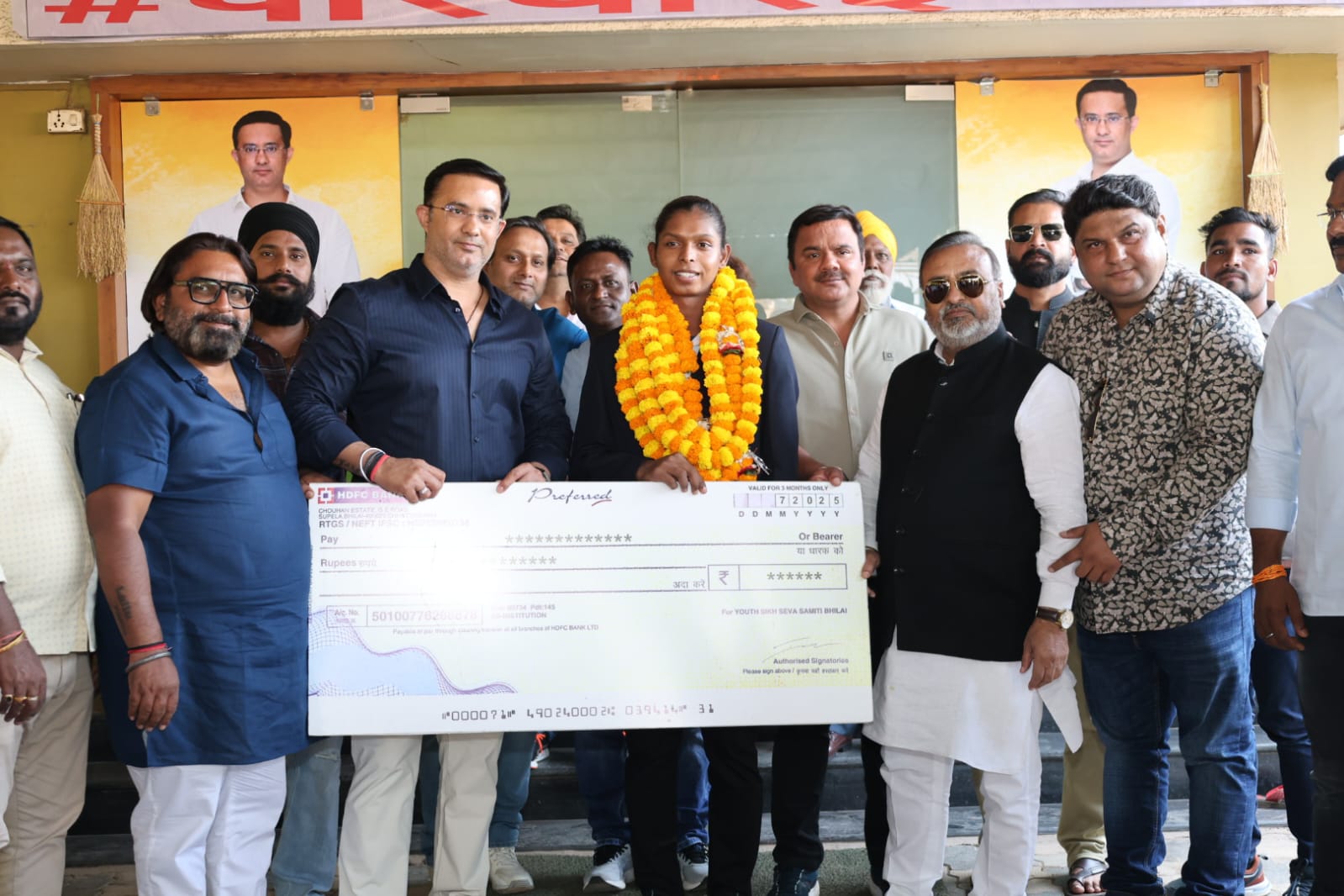 संजू देवी न सिर्फ छत्तीसगढ़, बल्कि पूरे देश की बेटियों के लिए हौसले, परिश्रम और दृढ़ता का प्रतीक हैं। उनके अदम्य साहस, कठोर मेहनत और उत्कृष्ट खेल कौशल ने भारत तथा छत्तीसगढ़ का गौरव बढ़ाया है।कार्यक्रम के दौरान छत्तीसगढ़ कबड्डी संघ के अध्यक्ष श्री शशिकांत बघेल,श्री मलकीत सिंह, श्री अनिल चौधरी, श्री जोगा राव,निर्मल सिंह निम्मे, साजिद अंसारी, इंद्रजीत सिंह चिंटू,रमन राव, शाहनवाज कुरैशी, डॉ. हरजिंदर सिंह तथा अन्य समिति सदस्य एवं पदाधिकारी उपस्थित थे।