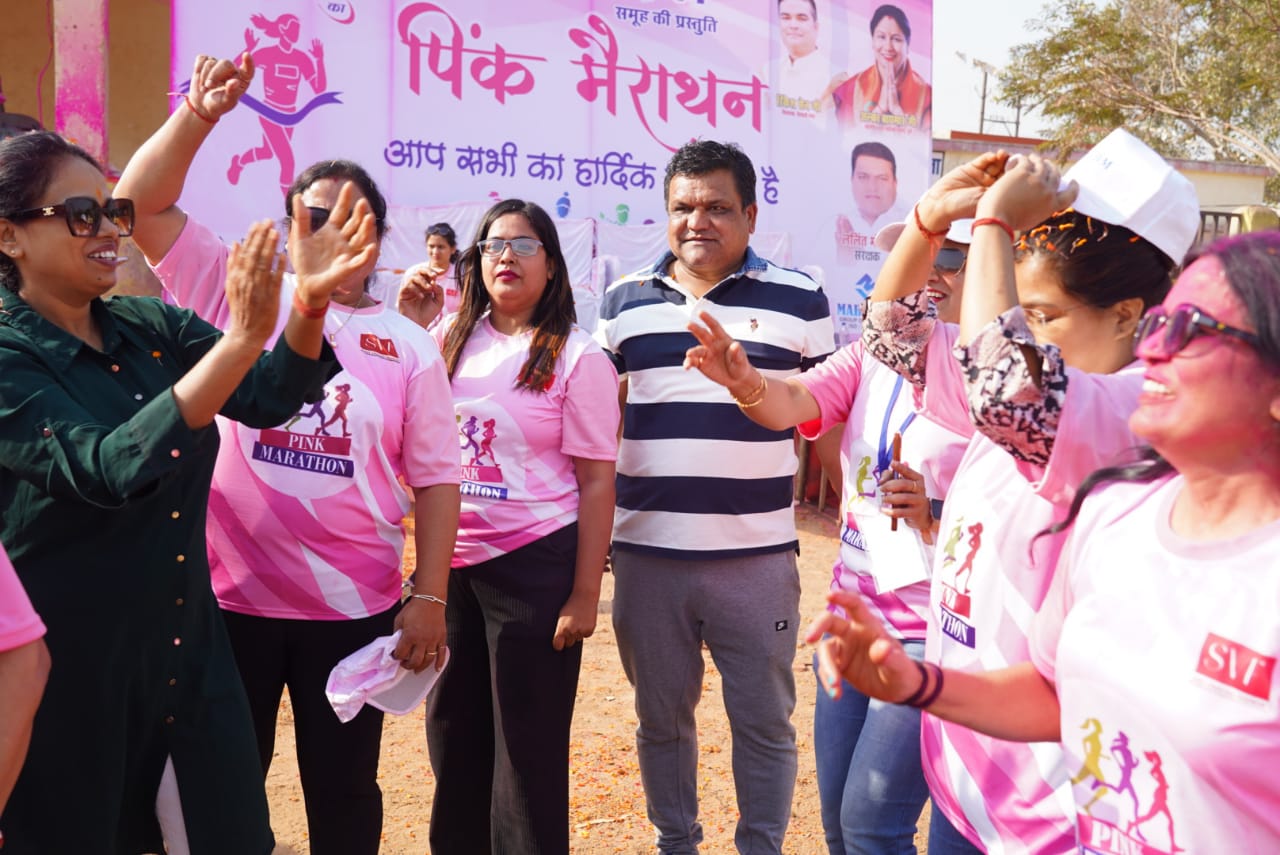 पिंक मैराथन दशहरा मैदान से चालू होकर भगत सिंह चौक से सद्भावना चौक से सेंट जेवियर स्कूल होते हुए वापस दशहरा मैदान शांति नगर में संपन्न हुई । मैराथन के पश्चात फूलों की होली में समस्त महिलाओं ने नृत्य कर समा बांध दिया। मंच का संचालन शिवाली भोंसले , नम्रता सेन एवं पिया भौमिक ने किया। अतिथि के रूप में श्रीमती स्वीटी कौशिक ,पार्षद स्मिता दोड़के रायपुर से अंजना खरे एवं पुलिस की रक्षा टीम उपस्थित थी। जुंबा का संचालन संतोष काले एवं रानी नंदिनी की टीम द्वारा किया गया। आयोजन समिति में डॉ सविता जिया, फरिश्ता, मनप्रीत कौर, रश्मि देशमुख उपस्थित थे । मैराथन में प्रथम स्थान पर अंकिता महेश्वरी द्वितीय अर्पणा वर्मा तृतीय कुलेश्वरी प्रीतम चौथे नंबर पर सुरेखा शर्मा को मिला। उक्त जानकारी आयोजन समिति के ललित मोहन ने दी। मैराथन में दुर्ग भिलाई के विभिन्न जगहों से बहुत सी महिलाओं ने बढ़ चढ़कर हिस्सा लिया था। जिसमें प्रमुख रूप से भिलाई चेंबर ऑफ कॉमर्स ,लघु उद्योग भारती ,आईडीए के डॉक्टर्स रुंगटा डेंटल कॉलेज की टीम ,नवीन उज्जवल महाराष्ट्र मंडल ,पेबबल्स किंगडम की शिक्षिकाएं, महिला पुलिस रक्षा टीम ,कुर्सी पर क्रिकेट टीम और योगा क्लासेस की महिलाओं ने हिस्सा लिया था ।कार्यक्रम में समस्त प्रतिभागियों को टी-शर्ट श्री विनायक फैशन जुनवानी रोड कोहका द्वारा एवं महोबिया ग्रुप द्वारा विशेष सहयोग किया गया।