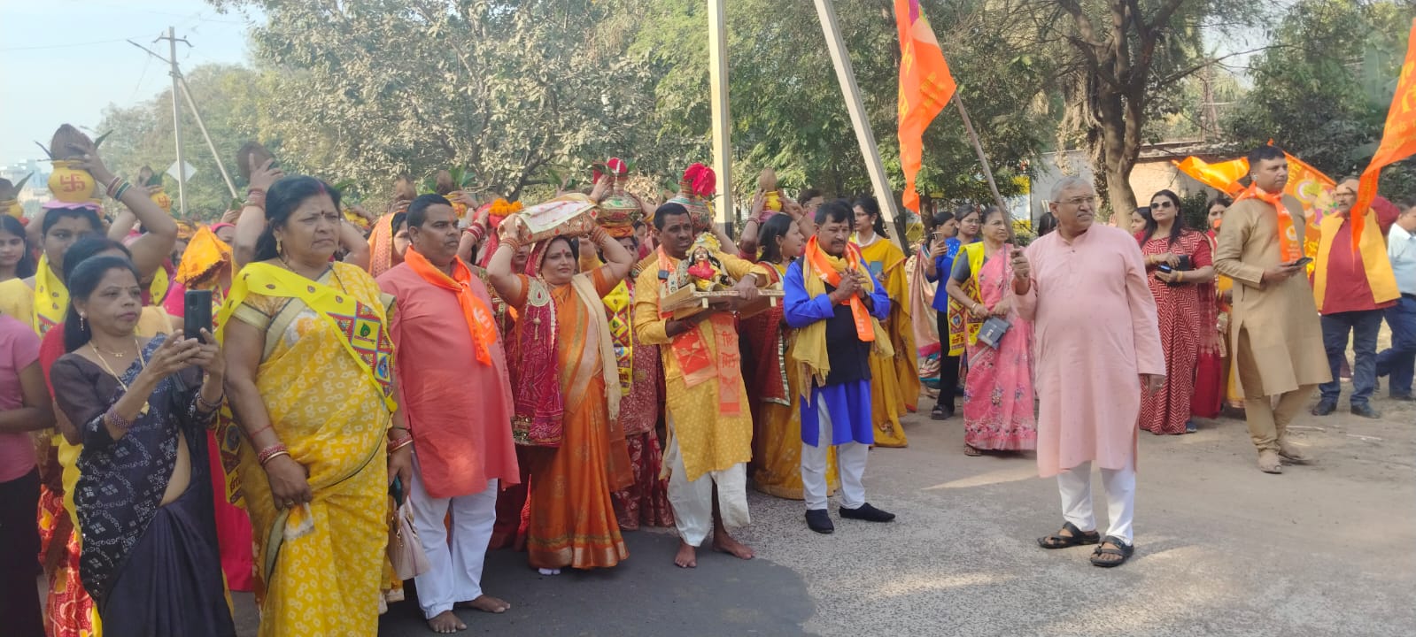 भिलाई 07 दिसंबर 2025। वीआईपी नगर, फेस-2, शिव मंदिर के पास, रिसाली में 7 से 15 दिसंबर तक नौ दिवसीय त्रिवेणी ज्ञान यज्ञ सप्ताह के पहले दिन भव्य कलश यात्राएं निकाली गईं। जिसमें सैकड़ों महिलाओं और कुंवारी कन्याओं ने कलश रखकर, मंगल गीत गाते हुए और ढोल-नगाड़ों के साथ नगर भ्रमण किया।