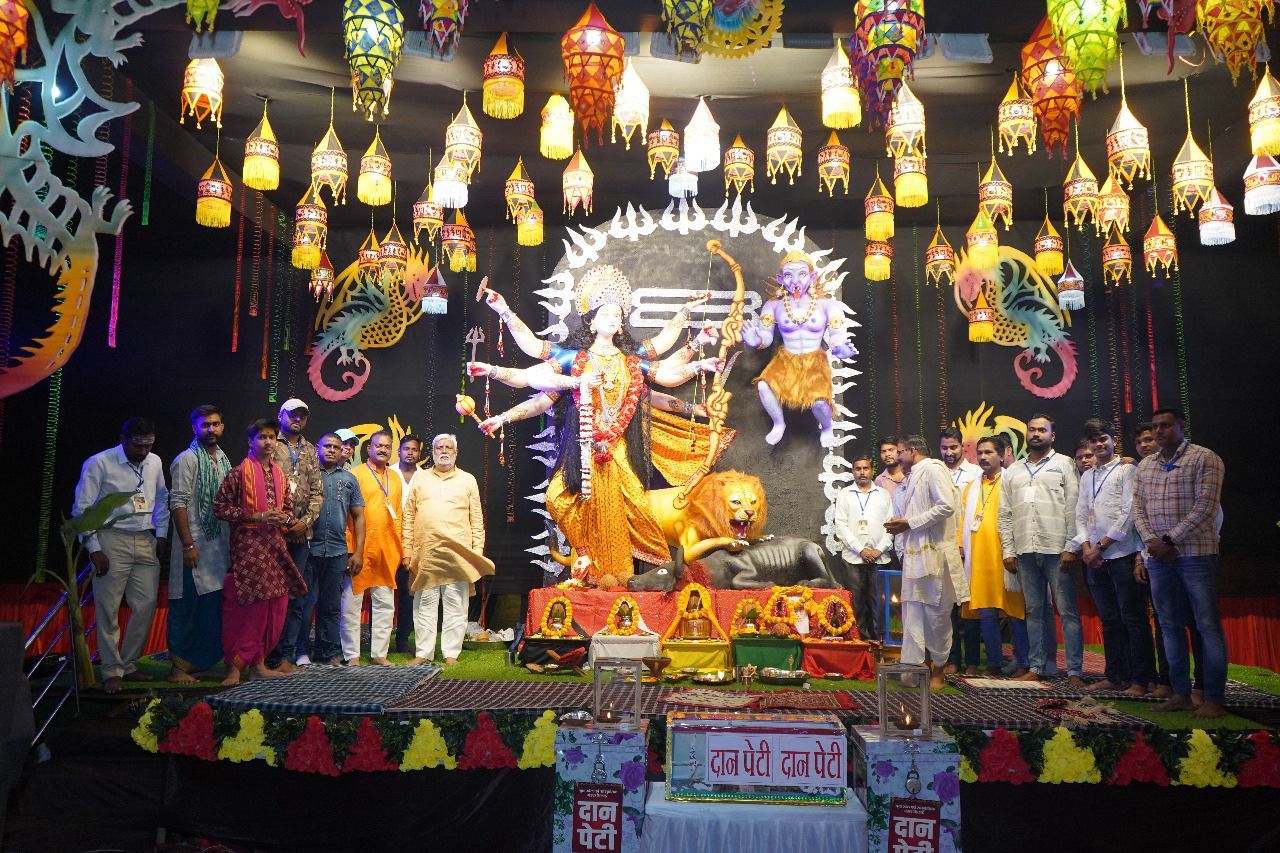 भिलाई 27 सितंबर 2025। नवरात्रि महोत्सव के चौथे दिन युवा खेल एवं सांस्कृतिक मंडल द्वारा आयोजित भव्य दुर्गा पूजा में माता रानी की विशेष पूजन-अर्चना सम्पन्न हुई। श्रद्धालु माँ दुर्गा के दरबार में पहुँचे और विधि-विधान से पूजा कर आशीर्वाद प्राप्त किया।इस वर्ष पंडाल की “ड्रैगन” थीम ने सभी श्रद्धालुओं का मन मोह लिया। पंडाल की रंग-बिरंगी रोशनी, फूलों की सजावट और भव्य श्रृंगार से सुसज्जित माँ दुर्गा की प्रतिमा आकर्षण का केंद्र बनी हुई है। पंडाल के बीचों-बीच बैठा विशाल ड्रैगन और उसके चारों ओर की कलात्मक सजावट ने पूरे वातावरण को दिव्यता और भव्यता से भर दिया। बच्चों और युवाओं ने इस अनोखी थीम का आनंद लिया और माता के दर्शन के साथ-साथ पंडाल की रचनात्मक झलकियों की भी सराहना की।भक्तों की सुविधा के लिए भोजन स्टॉल, झूले, मेले और नि:शुल्क पार्किंग की व्यवस्था भी की गई, जिससे परिवार सहित सभी श्रद्धालु आराम से पंडाल में आकर माता के दर्शन कर सकते हैं। समिति द्वारा आयोजित सांस्कृतिक प्रस्तुतियों और भजन-कीर्तन ने श्रद्धालुओं के मन को भक्तिरस से भर दिया।इस शुभ अवसर पर दुर्ग के आई जी श्री राम गोपाल गर्ग जी एवं पूर्व विधानसभा अध्यक्ष श्री प्रेम प्रकाश पांडेय जी विशेष रूप से उपस्थित हुए। माता की आराधना कर उन्होंने समिति के सभी सदस्यों को भव्य आयोजन की बधाई एवं शुभकामनाएँ दी।युवा खेल एवं सांस्कृतिक मंडल ने समस्त नगरवासियों से आग्रह किया है कि वे परिवार सहित इस अद्वितीय आयोजन का हिस्सा बनें और माँ दुर्गा के आशीर्वाद से सुख, शांति और समृद्धि प्राप्त करें।समिति के अध्यक्ष चन्ना केशवलू ने भिलाई दुर्ग के श्रद्धालुओं से अपील किया कि सेक्टर 7 दुर्गा पूजा पंडाल में पहुंचकर मॉ दुर्गा जी का आशीर्वाद प्राप्त करें ।