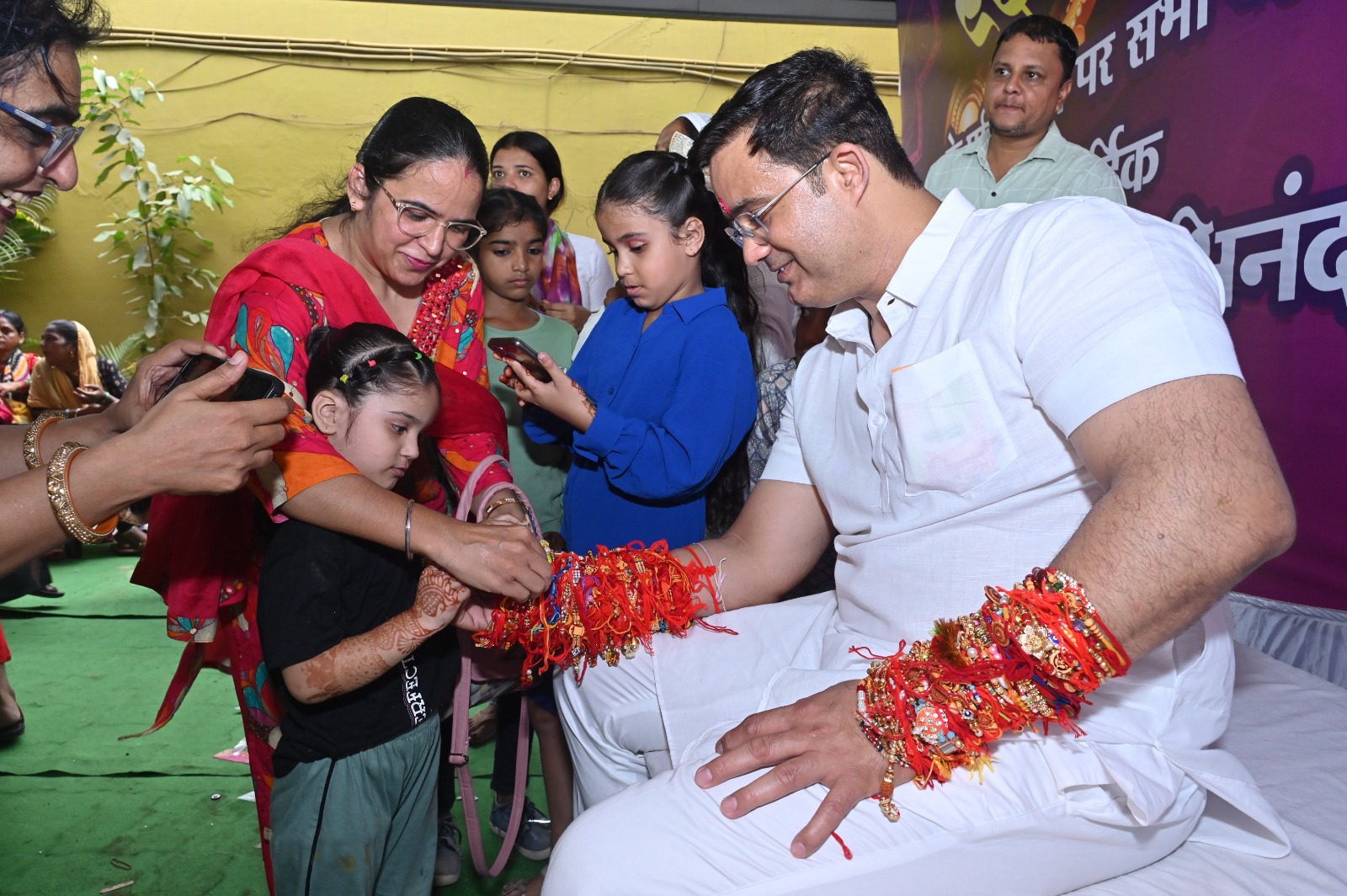 रक्षाबंधन का त्यौहार हर्षोल्लास के साथ ट्रांसपोर्ट नगर में मना,,,, बहनों ने भाई के दोनों कलाइयों में राखी बांधी